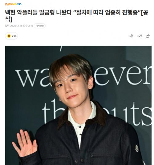 此前,边伯贤方面于今年4月表示:"为保护旗下艺人边伯贤的权益,我们基于持续监控和粉丝们的举报,一直在收集SNS(X、YouTube等)、网络社区(DC Inside、The Qoo、Nate Pann等)、Daum cafe(女性时代、Soul Dressor、Jjukppang Cafe等)上针对边伯贤的恶意帖子及评论的证据。基于收集到的资料,已于15日向首尔广津警察署提交了以侮辱罪、损害名誉、散布虚假事实、性骚扰等嫌疑要求进行调查的起诉状。""今后,针对旗下艺人及成员们的恶意行为,本公司也将不予任何宽大处理或和解,会采取强硬应对措施,并为保护艺人权益尽最大努力。" 展现了强硬应对的姿态。