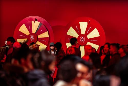 娇兰以赤红之色为主色调渲染鸿运赢家体验空间,寓意红运启新,迎接整年胜意美好。空间中央金逸骏马旋转而行,宛若驰骋之姿,传递娇兰“前程坦途,赢面而来”的新年祝愿。