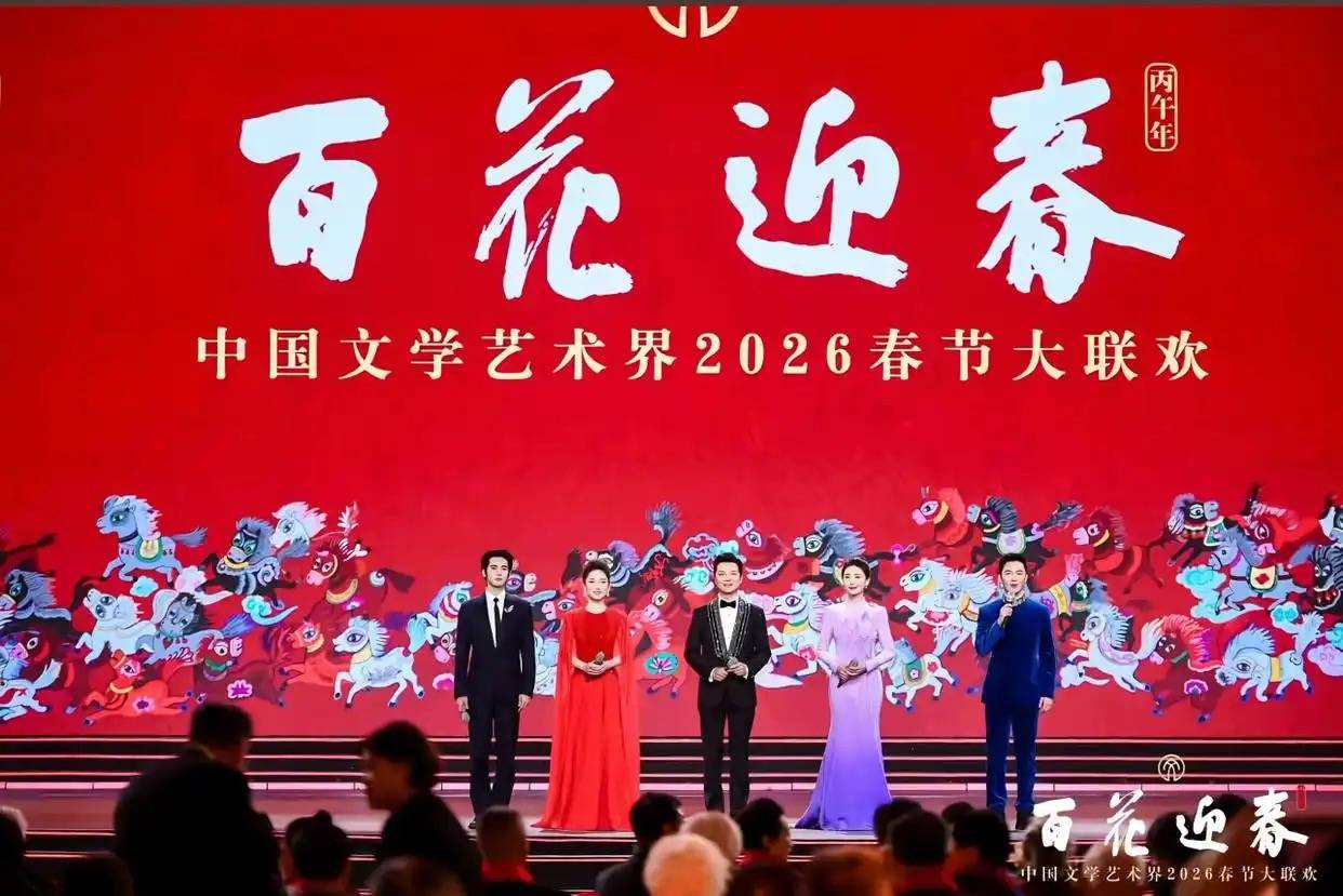 “百花迎春——中国文学艺术界春节大联欢”是中国文联的重要品牌活动。本次大联欢由中国文联主办,各全国文艺家协会、中国文学艺术基金会等协办,中国文联文艺志愿服务中心承办。由沈腾、张凯丽、李宇春、周深、于适、龚俊、陈楚生、李云霄、黄子弘凡、阿云嘎、刘浩存等担任表演嘉宾。晚会突出精品性、沉浸式、互动性,老中青艺术家汇聚一堂、各艺术门类精品力作联袂上演,展现文艺界共赴“十五五”新征程的奋进力量。