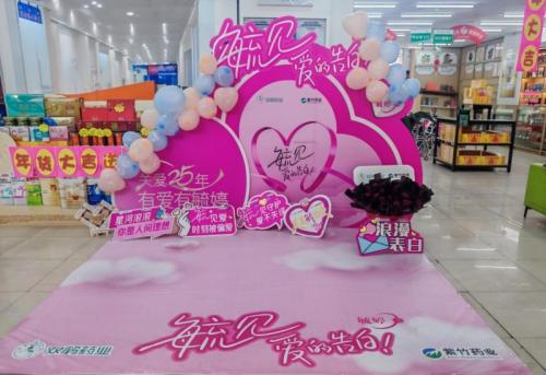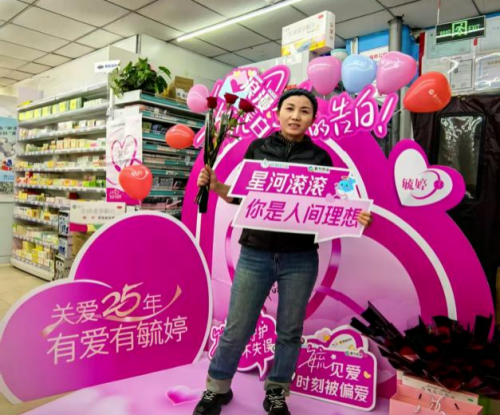 情人节期间,毓婷于全国23个省份、超500家连锁药店精心布置情人节主题装饰,营造温暖浪漫的购物氛围。门店内设置玫瑰赠礼、互动打卡等环节,吸引众多消费者驻足参与,有效提升门店客流的同时,也以场景化沟通深化了消费者对毓婷品牌的情感联结与好感认知。