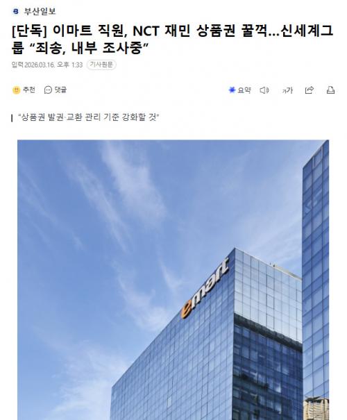 中国娱乐网讯 www.yule.com.cn 韩国大型零售商Emart内部员工涉嫌截留NCT成员罗渽民赠送给粉丝的商品券一事持续发酵,引发广泛舆论关注。对此,Emart母公司新世界集团已公开致歉,并表示将加强商品券发行与兑换的管理制度,防止类似情况再次发生。