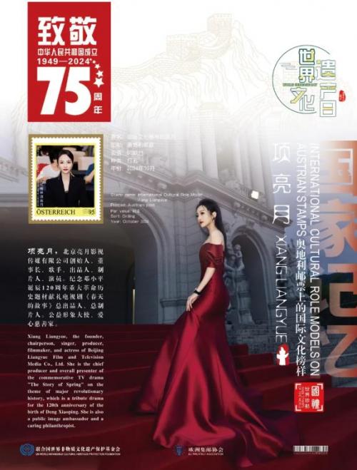同时,联合国邮政、荷兰邮政、奥地利邮政、法国邮政为中国影视名家项亮月在全球公开发行一套以“致敬中华人民共和国成立75周年暨世界文化遗产日”为主题的邮票与珍藏册。以邮为媒,方寸之间架起中外文化交流的桥梁。