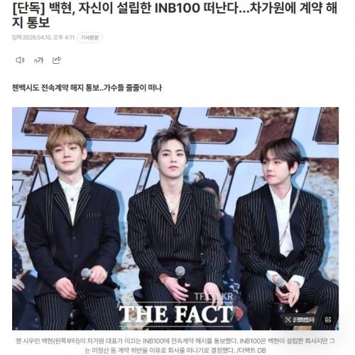 INB100是伯贤为从SM娱乐独立而筹备创立的公司。2024年5月,该公司被车佳元代表与MC梦共同创立的One Hundred收购,成为其子公司。此后车佳元成为最大股东,与One Hundred、Big Planet Made Entertainment一同运营INB100。然而,车佳元利用CBX的IP签订大规模合约、收取数百亿韩元预付款后,却让公司陷入完全资本侵蚀状态。据称,拖欠CBX的未结算金额高达数十亿韩元。此外,公司也未向合作方及工作人员支付相关费用,导致CBX难以正常开展活动。