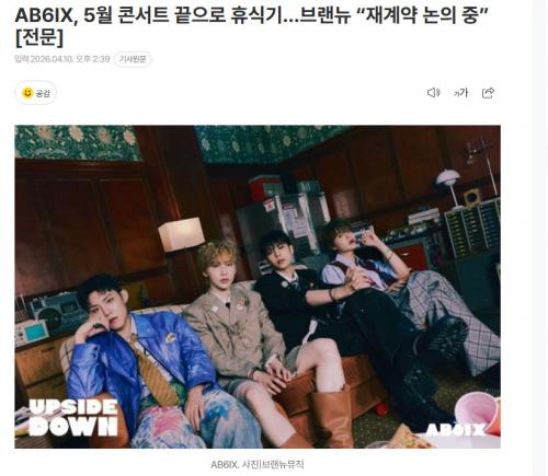 中国娱乐网讯 www.yule.com.cn 组合AB6IX将在5月演唱会后进入休整期。19日,经纪公司BrandNew Music宣布:“自2019年5月22日出道以来,与本公司携手同行的AB6IX专属合约将于5月25日到期。”公司表示:“经与成员充分商议,AB6IX的团体活动将在5月23日、24日举办的‘2026 AB6IX CONCERT‘6IX TO SEVEN’’结束后,暂时进入休整期。”目前正与成员就续约事宜进行深入商议,公司将充分尊重并支持站在新起点的成员们的选择,并向长久以来陪伴AB6IX的ABNEW粉丝致以诚挚谢意。