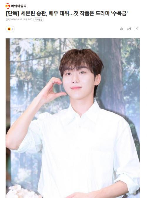 中国娱乐网讯 www.yule.com.cn SEVENTEEN成员夫胜宽将以演员身份开启全新挑战。据MyDaily 22日报道,夫胜宽将通过新电视剧《周三周四周五》(暂定名)正式以演员身份出道,目前已完成剧本研读。
